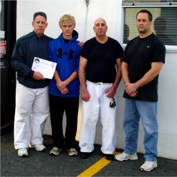 During a recent trip to Somerset, Massachusetts, Sifu Chun, Jr., had the pleasure of promoting one of his Massachusetts’ students. Sifu Chun, Jr. presented a certificate of “Assistant Sensee” in the Go Shin Jitsu Kenpo/Chinese Kempo art style; This presentation followed a day of Go Shin Jitsu Kenpo/Chinese Kempo workshops instructed by Sifu Chun, Jr. at USA Karate Dojo in Somerset, owned and operated by Sensee (Shihan) Shannon Nadeau. This presentation was presented in the privacy of the GSJK/CKK students of Massachusetts. Those present are the Federation Members and Association Committee.