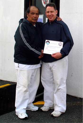 "You have displayed what a true Kenpo/Kempo artist is all about of the Chow's roots and Chun, Sr. lineage. You have made me proud of showing your courage of finding the truth of what is not real from your past. You showed your forgiveness and allowed yourself to be removed from others that treated you wrongly that didn't know or understand their purpose of how to be a true artist of our art style. You understood my Fist of Law of the Chow/Chun, Sr. ways of...Don't Ask, Don't Cheat and Don't Lie. Now, you are learning how to receive as I will give to those who are worthy and will receive not falsely of the titles or ranks and will carry on by not giving students false hopes. Remember... we serve the weak to protect and defend. Respect and Love"...Sifu Chun, Jr.